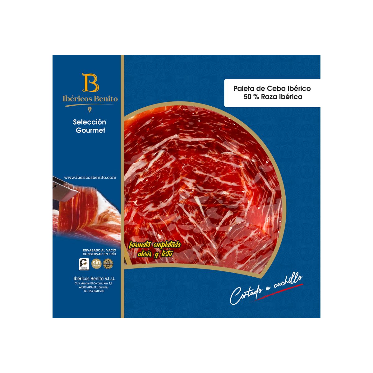 Si buscas comprar paleta de cebo ibérico 50% cortada a cuchillo, esta presentación en blonda redonda es una elección excelente para compartir, regalar o deleitarse en casa. Disfruta del auténtico sabor del ibérico en cada loncha y lleva a tu mesa un producto que combina calidad, tradición y presentación impecable.